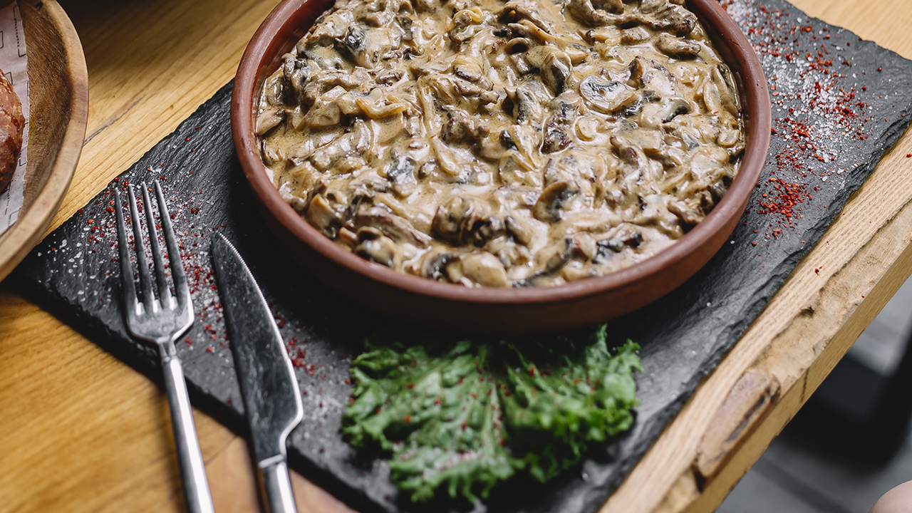 Мы приготовим бефстроганов из говядины классический со сметаной. Именно сметана в сочетании с томатной пастой дает ту самую бархатистую подливку, которую так любят за густоту и мягкий вкус. А добавив шампиньоны, вы получите бефстроганов из говядины с грибами — ещё более сытную версию. Но сегодня мы разберем базу.